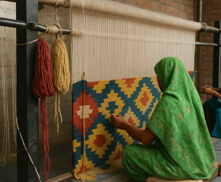 Our wool kilim flat weaves celebrate timeless craftsmanship and cultural artistry. Hand-woven by skilled artisans, these rugs are made from 100% natural wool, offering durability, softness, and vibrant geometric patterns.